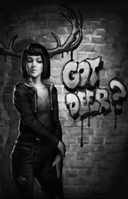 I thought now would be a great opportunity to share the cover art sketches of I WAS A TEENAGE WEREDEER. This is my upcoming urban fantasy novel taking place in the same world as STRAIGHT OUTTA FANGTON but which I’m actually a lot more impressed with. Jane Doe (oh, her poor cruel parents) is probably my favorite character along with Gary and Lucien.